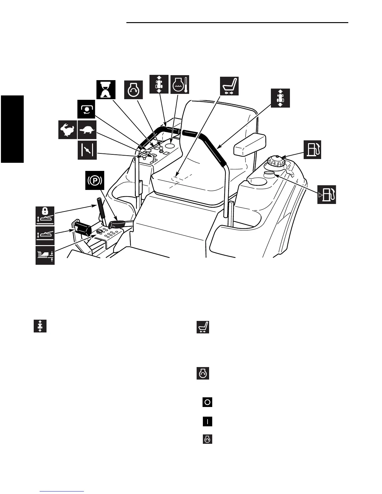 The information below briefly describes the function of individual controls. Starting, stopping, driving, and