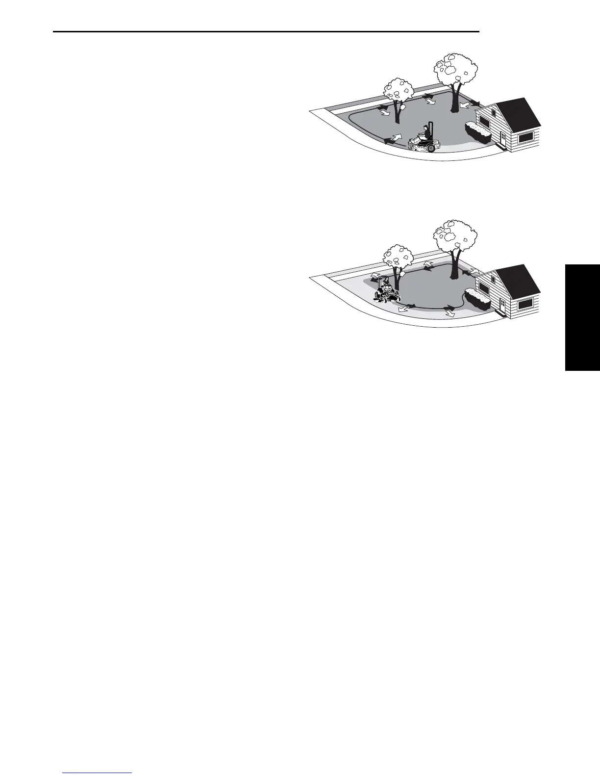the best mowing pattern to use. Obstructions such as