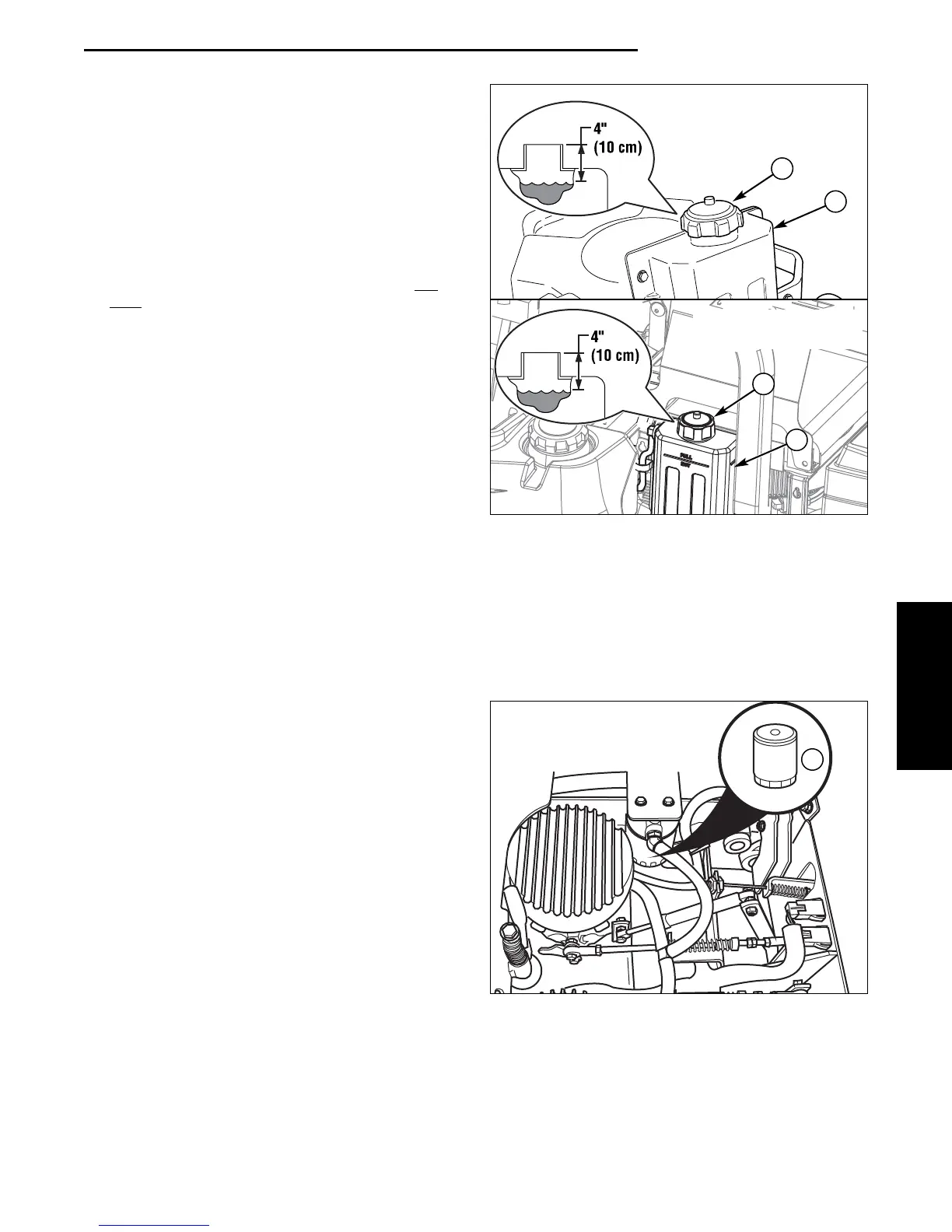 4” (10 cm) below top of the filler neck.