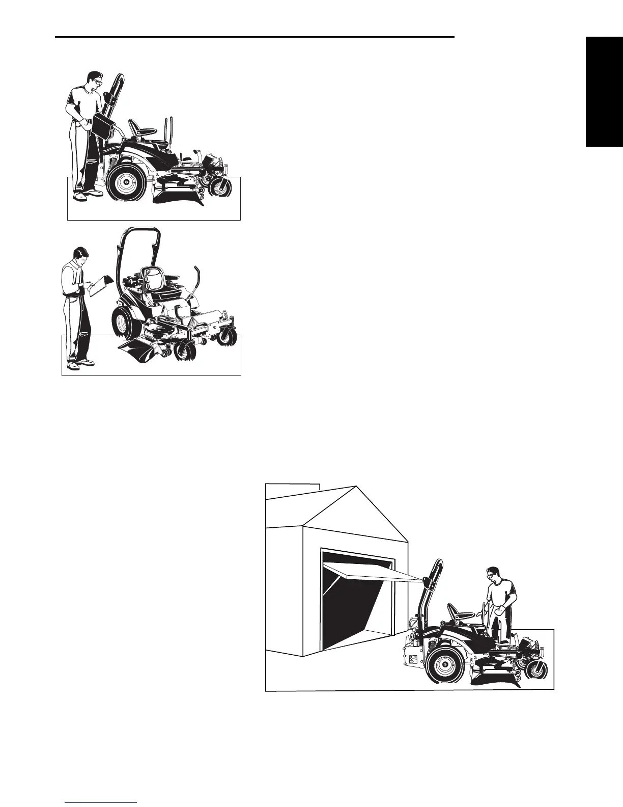 Always disengage all drives, shutoff the engine, and