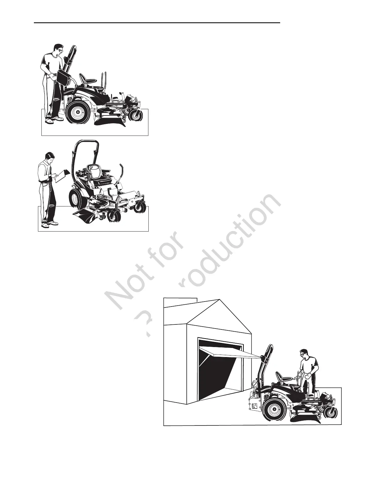 Always disengage all drives, shutoff the engine, and