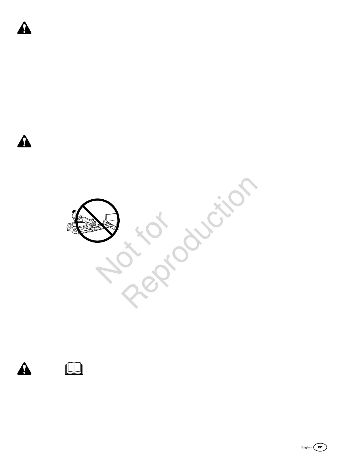 • Never allow passengers to ride on the unit.