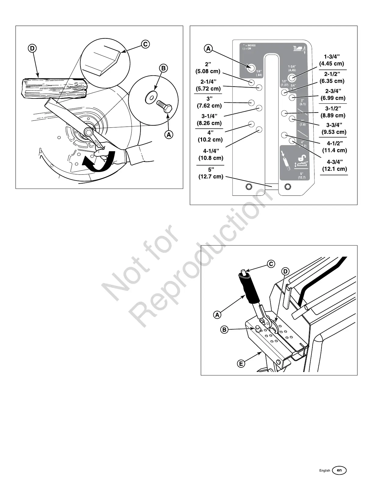 To set the cutting height at 1-3/4” (4,5 cm):