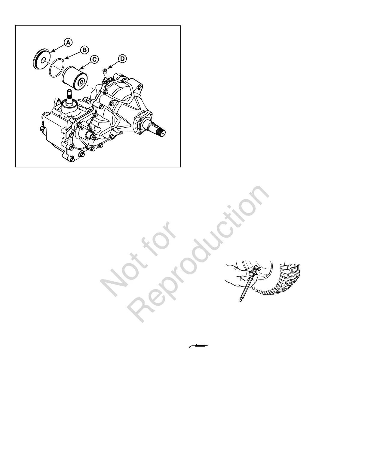 5. Remove the top oil fill vent port (D) and fill the transaxle