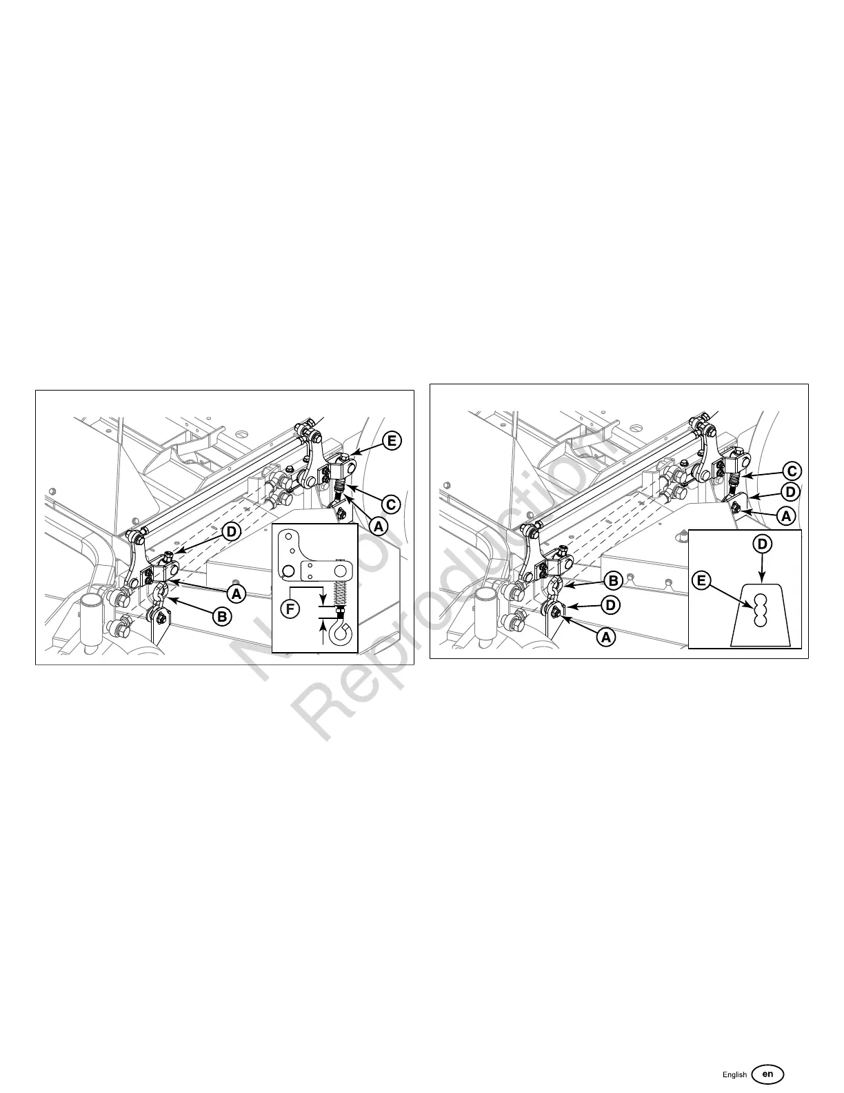 hanger chains (B) and the two (2) rear deck linkages (C).