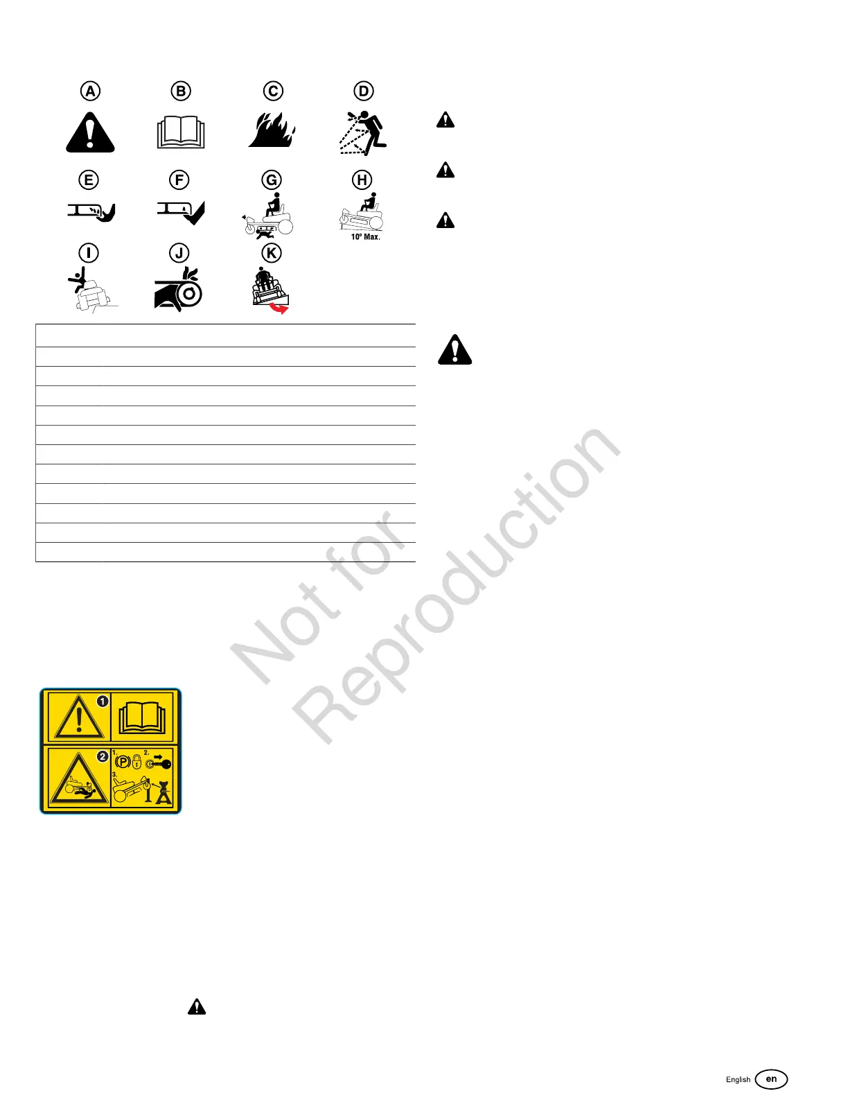 2.) Crushing Hazard, Mower:(1.) Park machine on flat