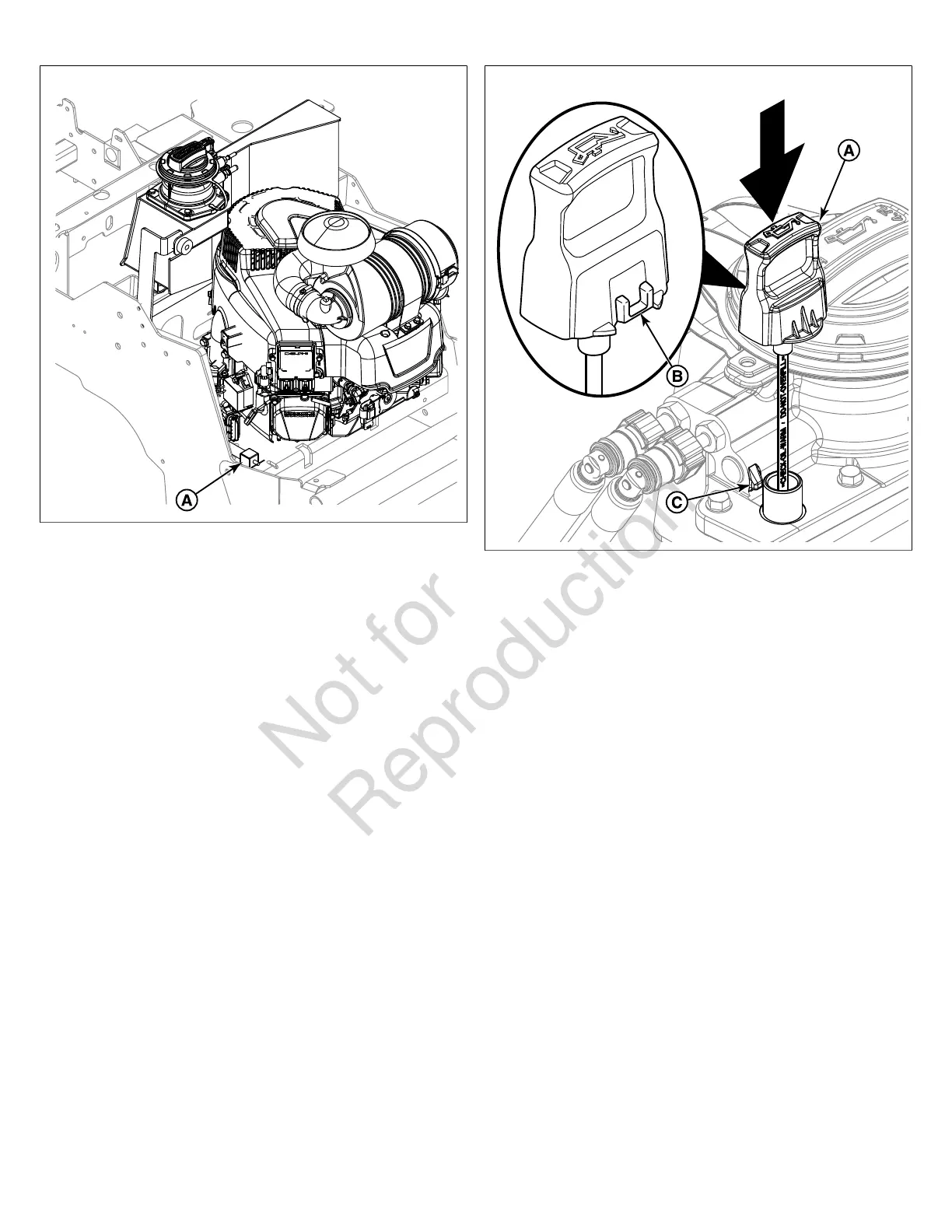 11. Install the engine oil dipstick (A, Figure 31) into the tank