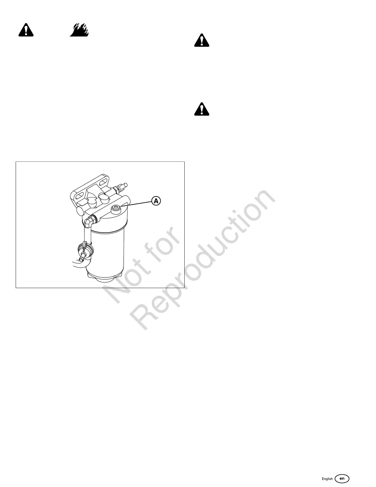 filters or water separator element. Clean up fuel spills