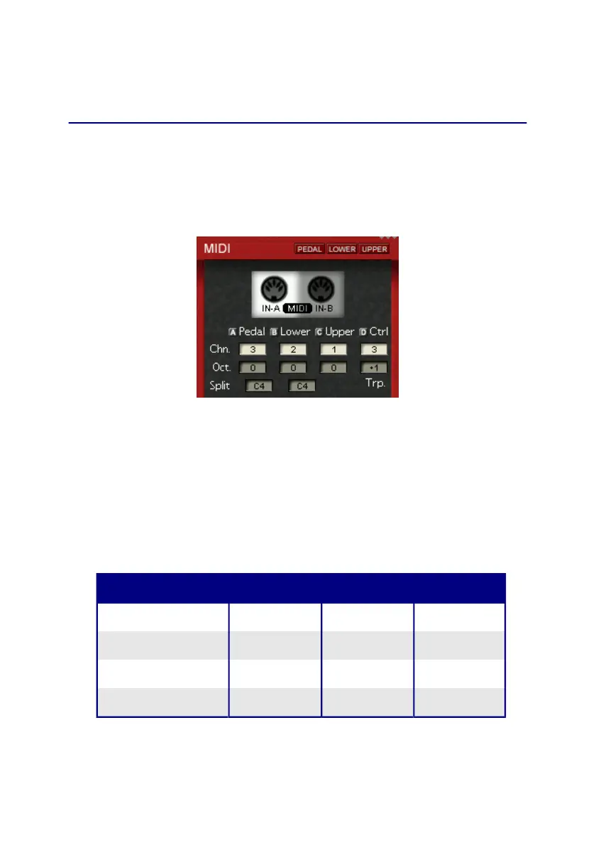 MIDI input. The default setting of the MIDI channels are as