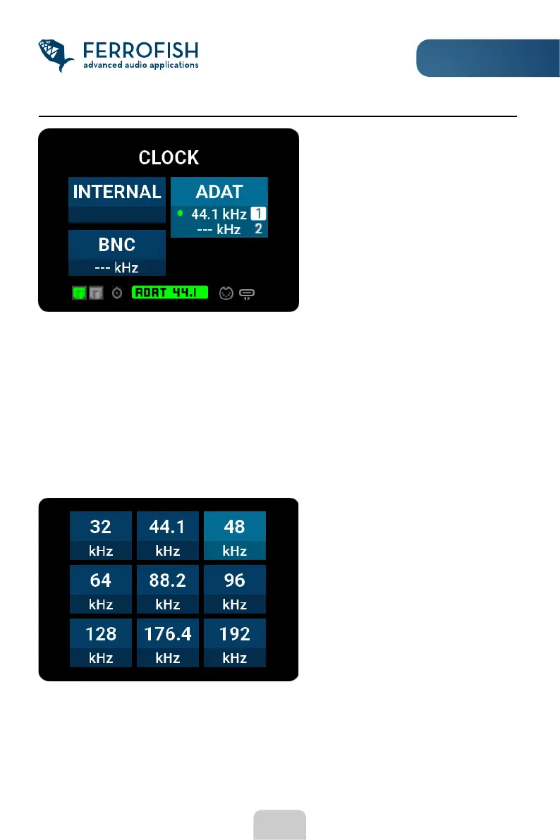 The "INTERNAL" eld displays the current frequency of the word clock generator of the
