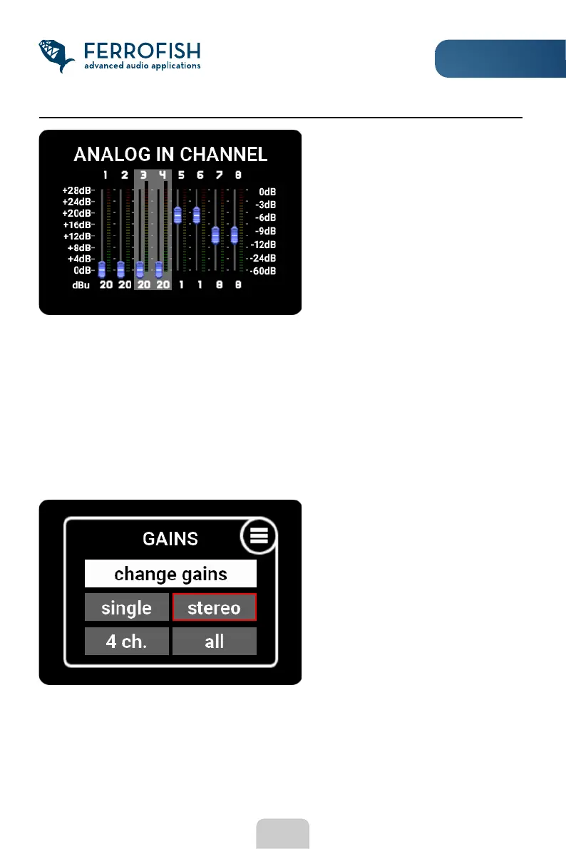 the analog inputs, so that you can adjust the level correctly. The dB scale of the display