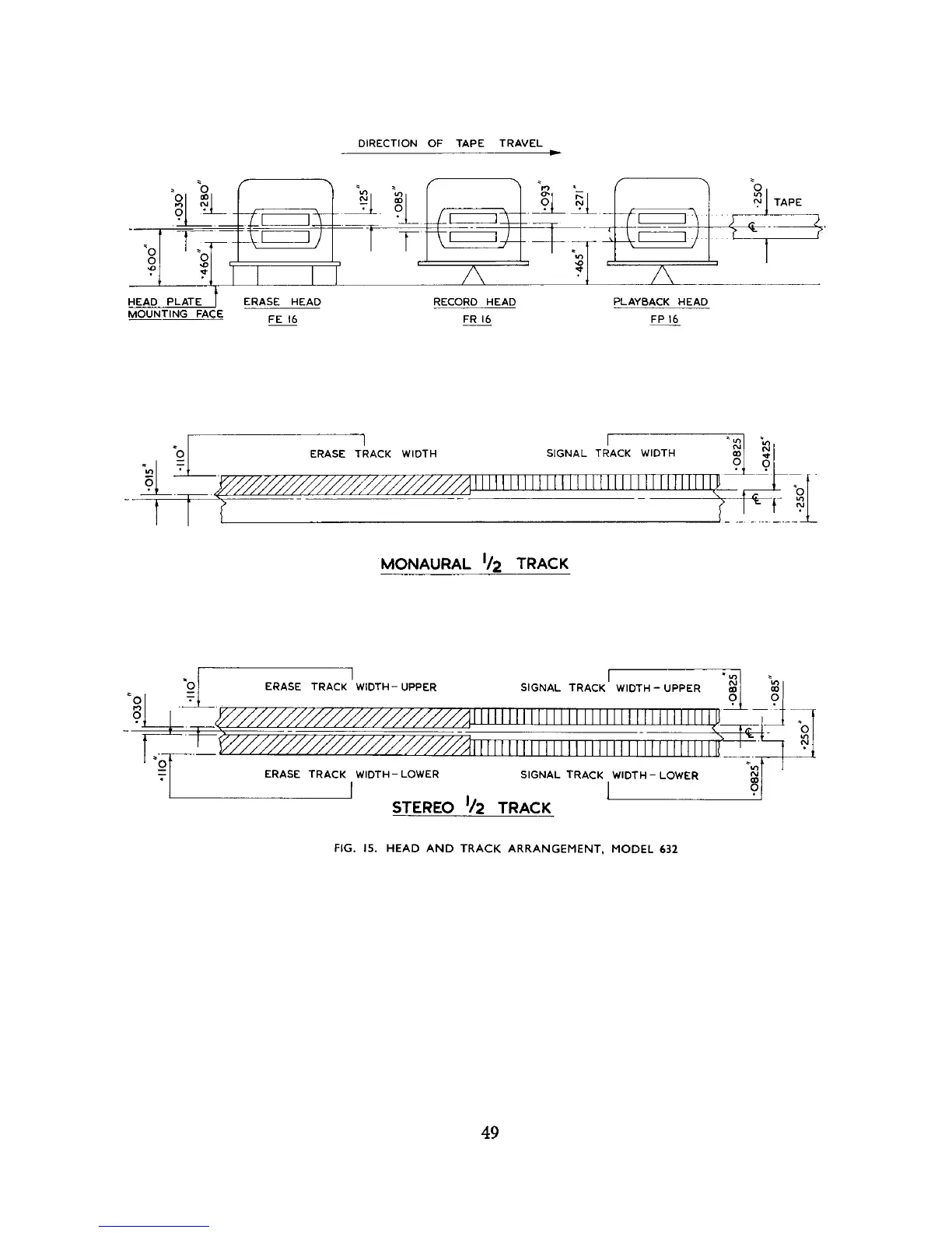Ferrograph 632 - Direction of Tape Travel; Head and Track Arrangement