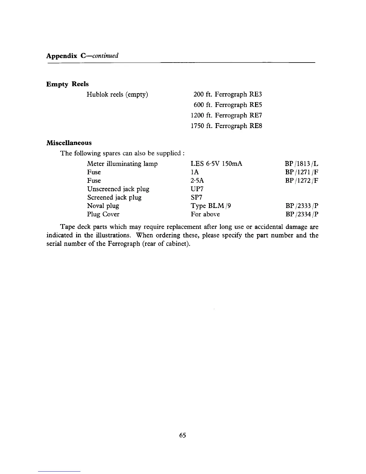 Ferrograph 632 - Empty Reels; Miscellaneous