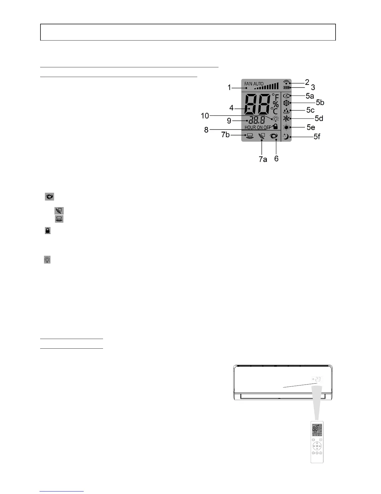 5.Mode display. Area of the display showing the current operating mode: auto (5a), cool (5b), dry (5c), fan (5d), heat