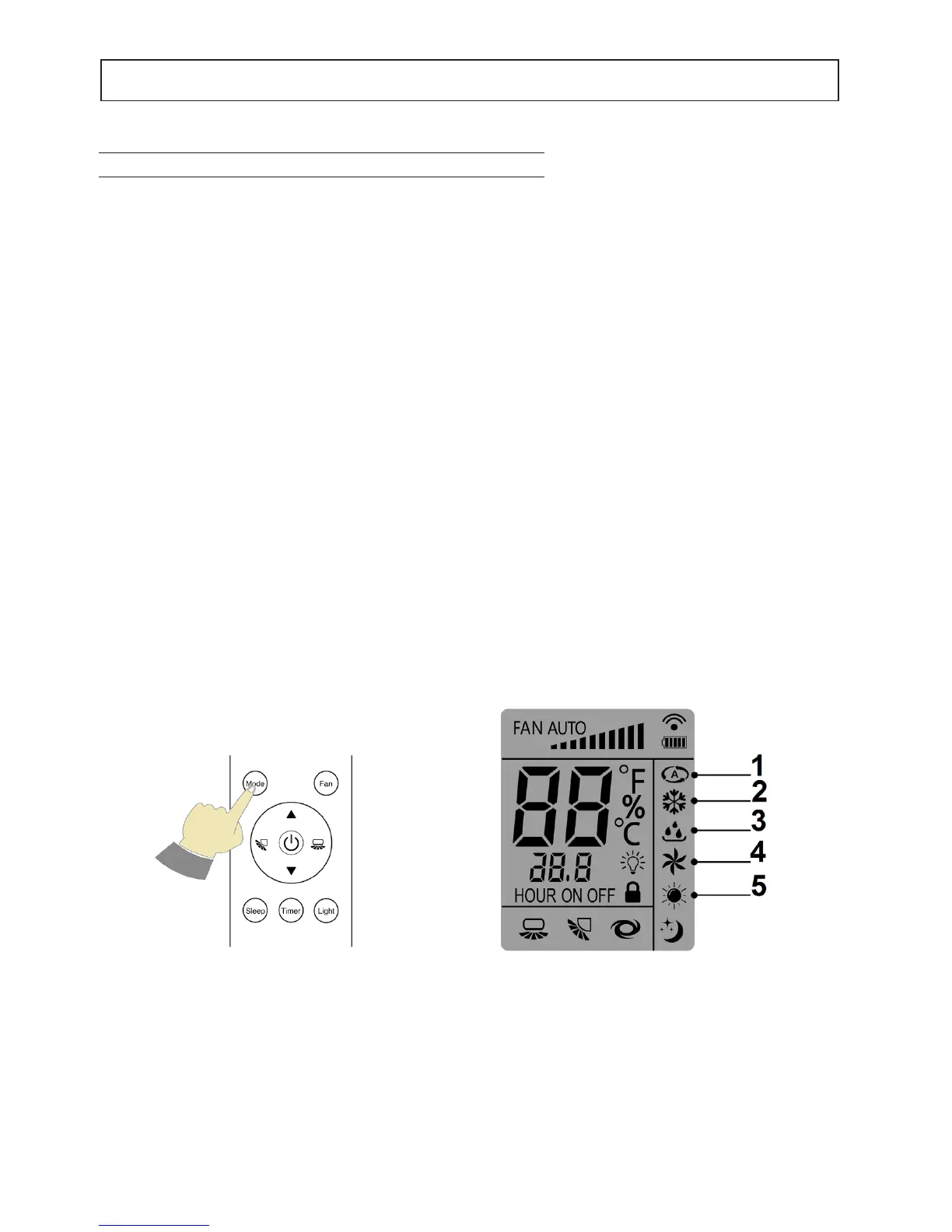 4.VENTILAZIONE Funzionamento ventilazione: questa funzione è selezionata premendo il tasto MODE no a