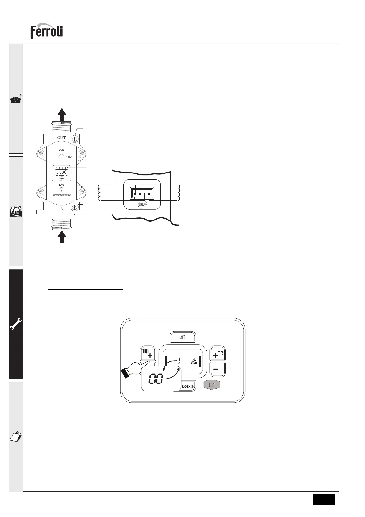 Одновременно нажмите на кнопки системы отопления (поз. 3 и 4 - рис.1) на 5 секунд, чтобы активировать режим TEST. Котел