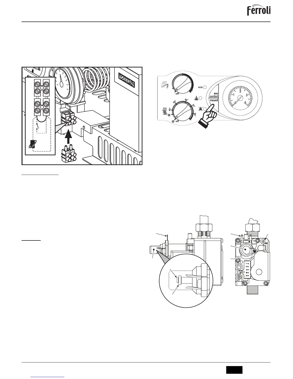•ConectaĠi din nou conectorul Faston decuplat de la cablul “modureg” pe valva de gaz.