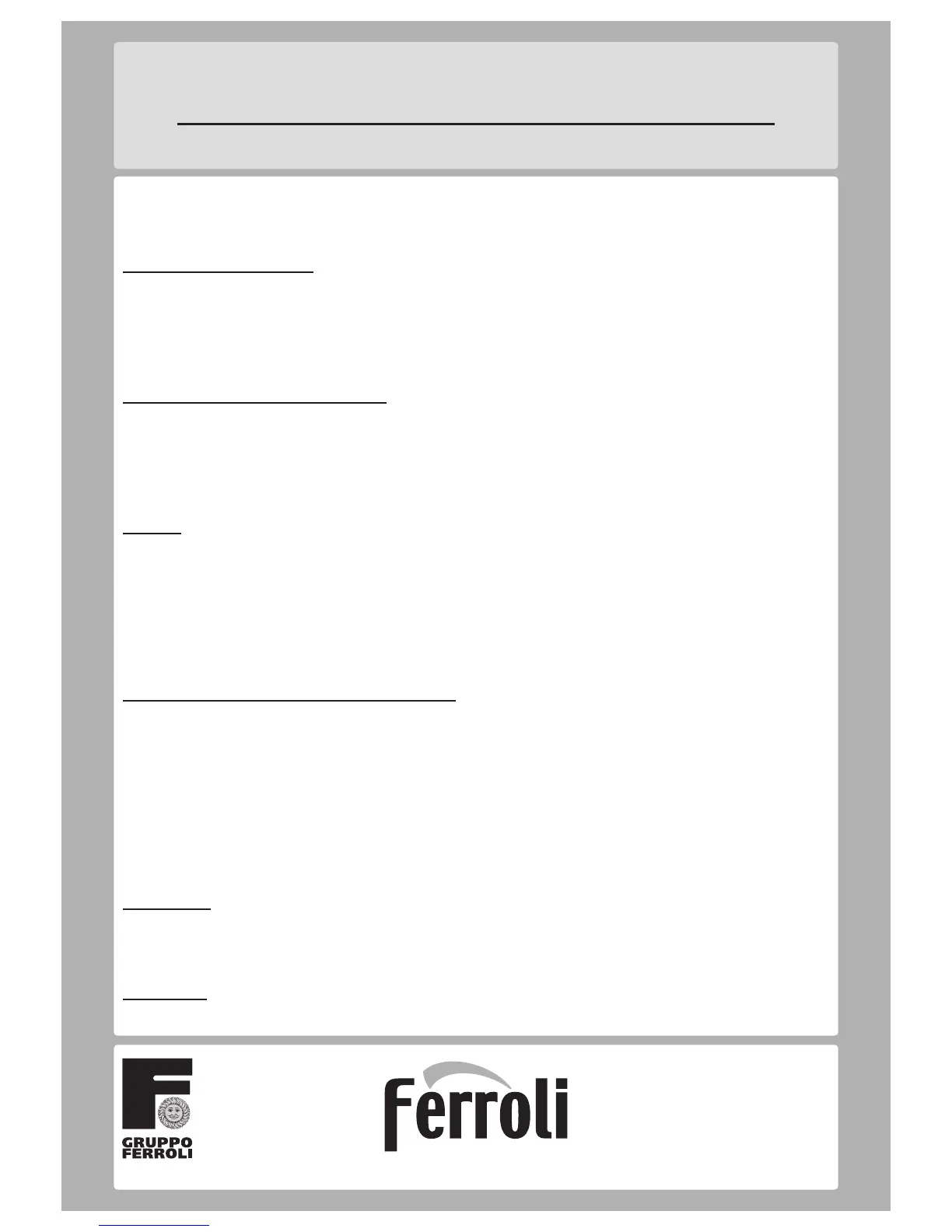 FERROLI S.p.A. - Via Ritonda 78/a - 37047 San Bonifacio (Verona) Italy - tel. +39.045.6139411 - fax. +39.045.6100933 - www.ferroli.it