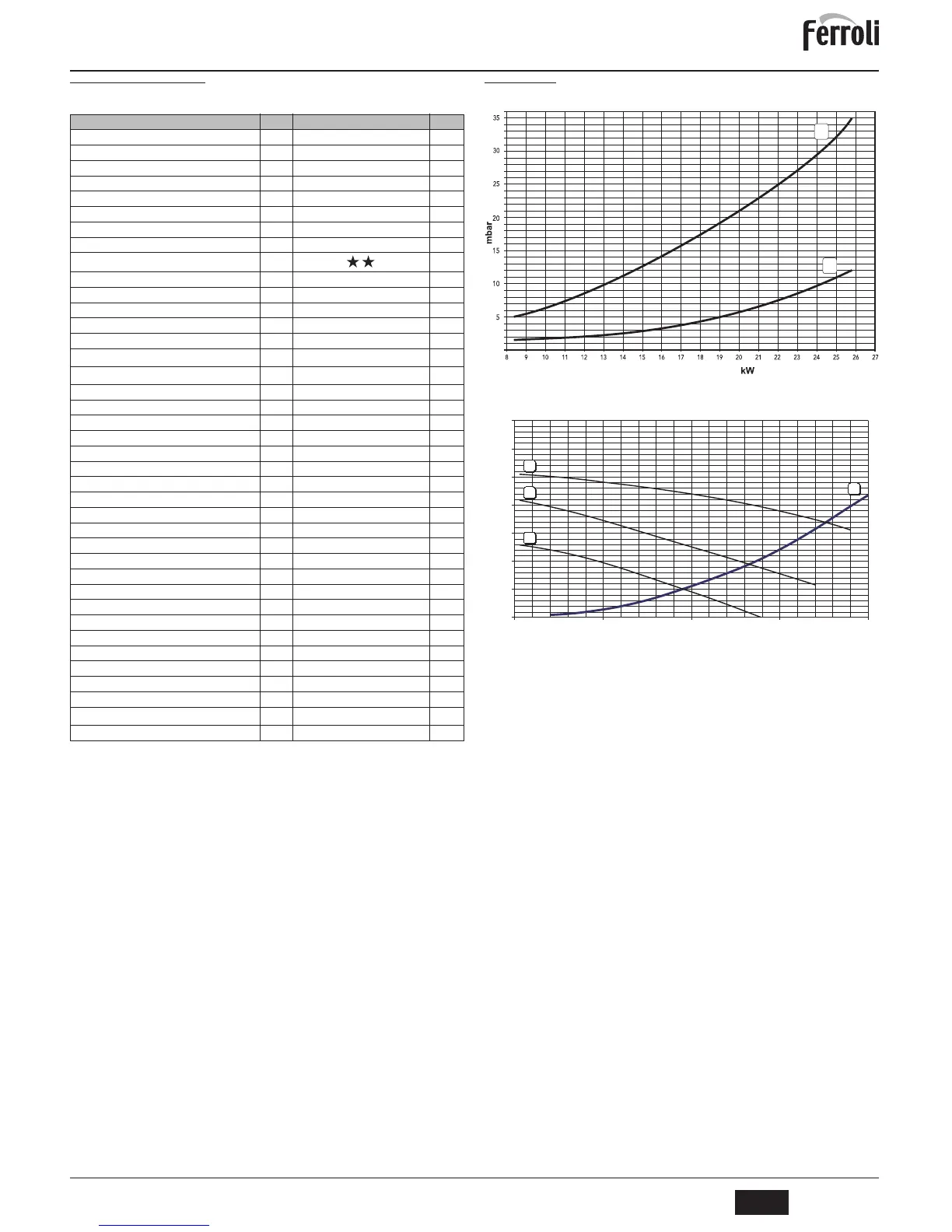 A = Pérdidas de carga de la caldera - 1,2 e 3 = Velocidad bomba de circulación