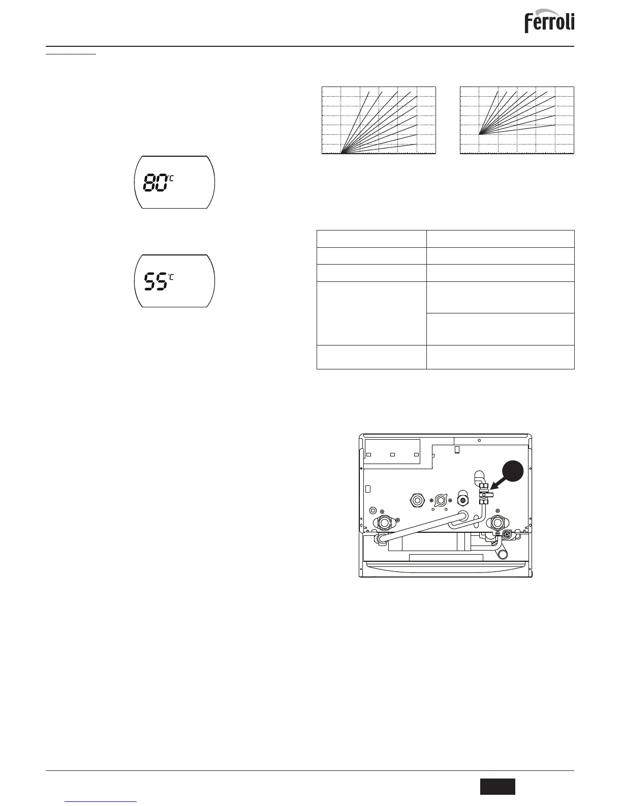 di 30°C ad un massimo di 80°C; si consiglia comunque di non far funzionare la caldaia