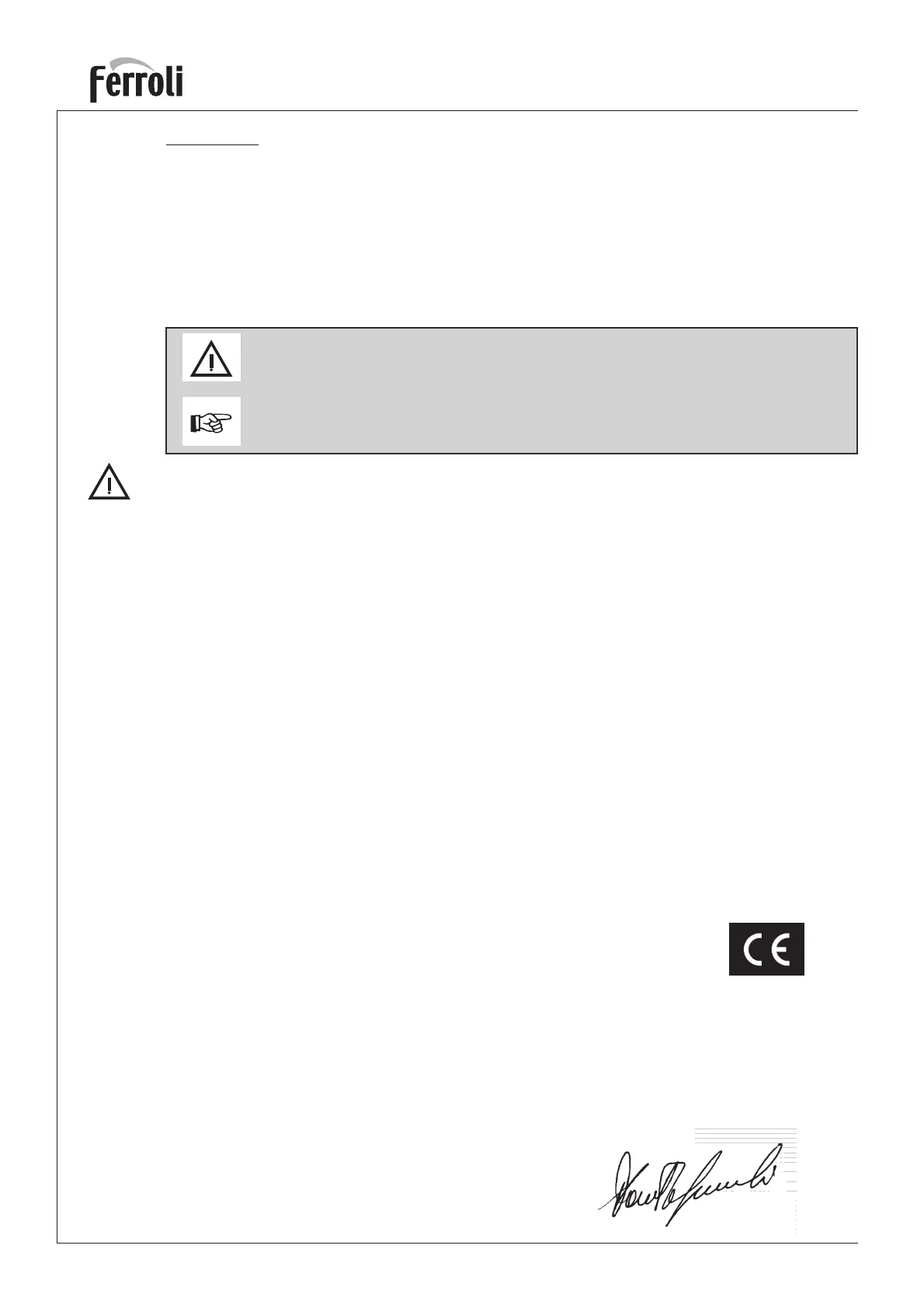 Contact Ferroli or a qualified engineer only.