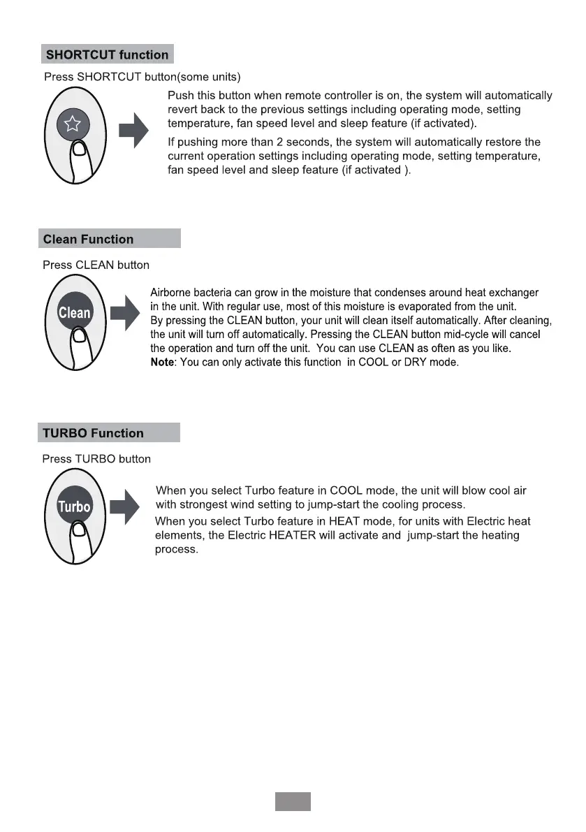 Ferroli GIADA - Additional Functions; SHORTCUT Function; Clean Function; TURBO Function