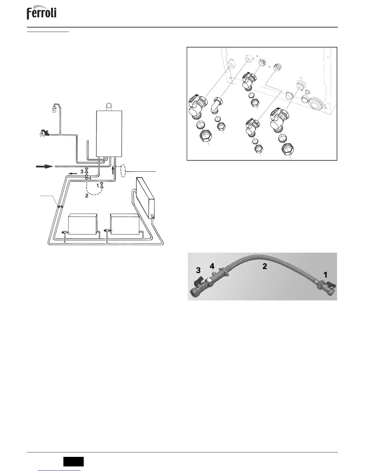The isolation valves supplied (see fig. 8) must be installed between the boiler and heat-