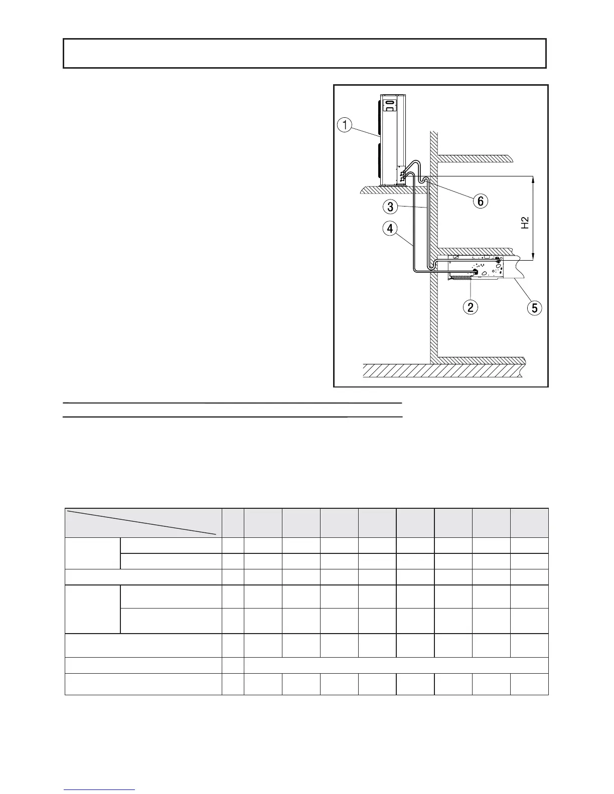 Diminution of the difference in height between the units (H1,H2) and the pipe lengths (L) will limit the load losses, con-