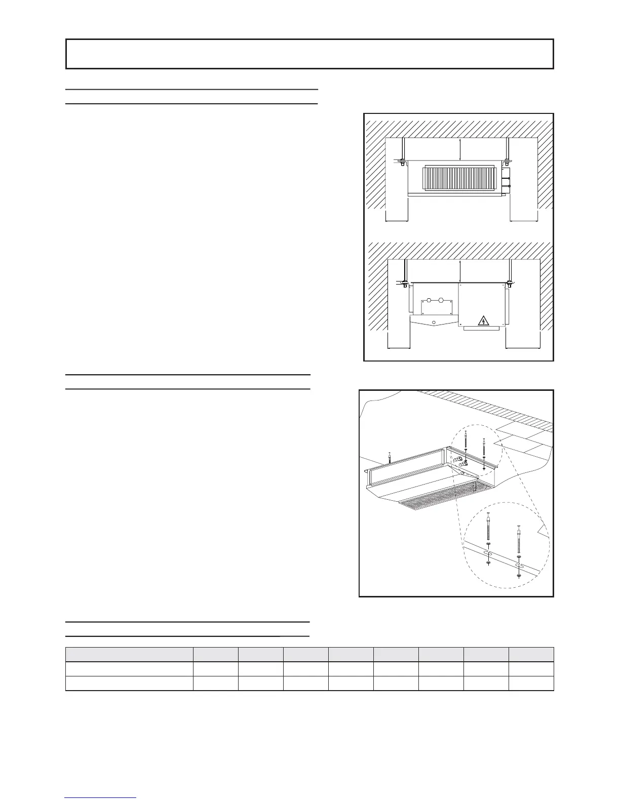 • Estos modelos de unidad interna se pueden montar contra el techo