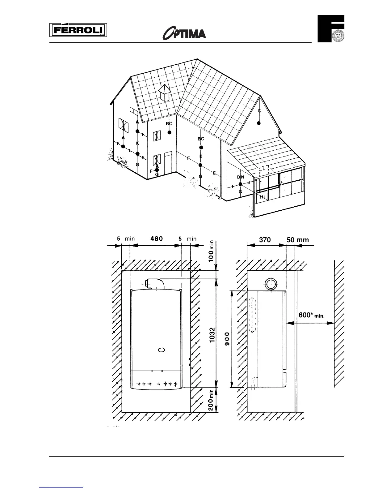 * Access to the front of the boiler must be available for maintenance (min. 600 mm).