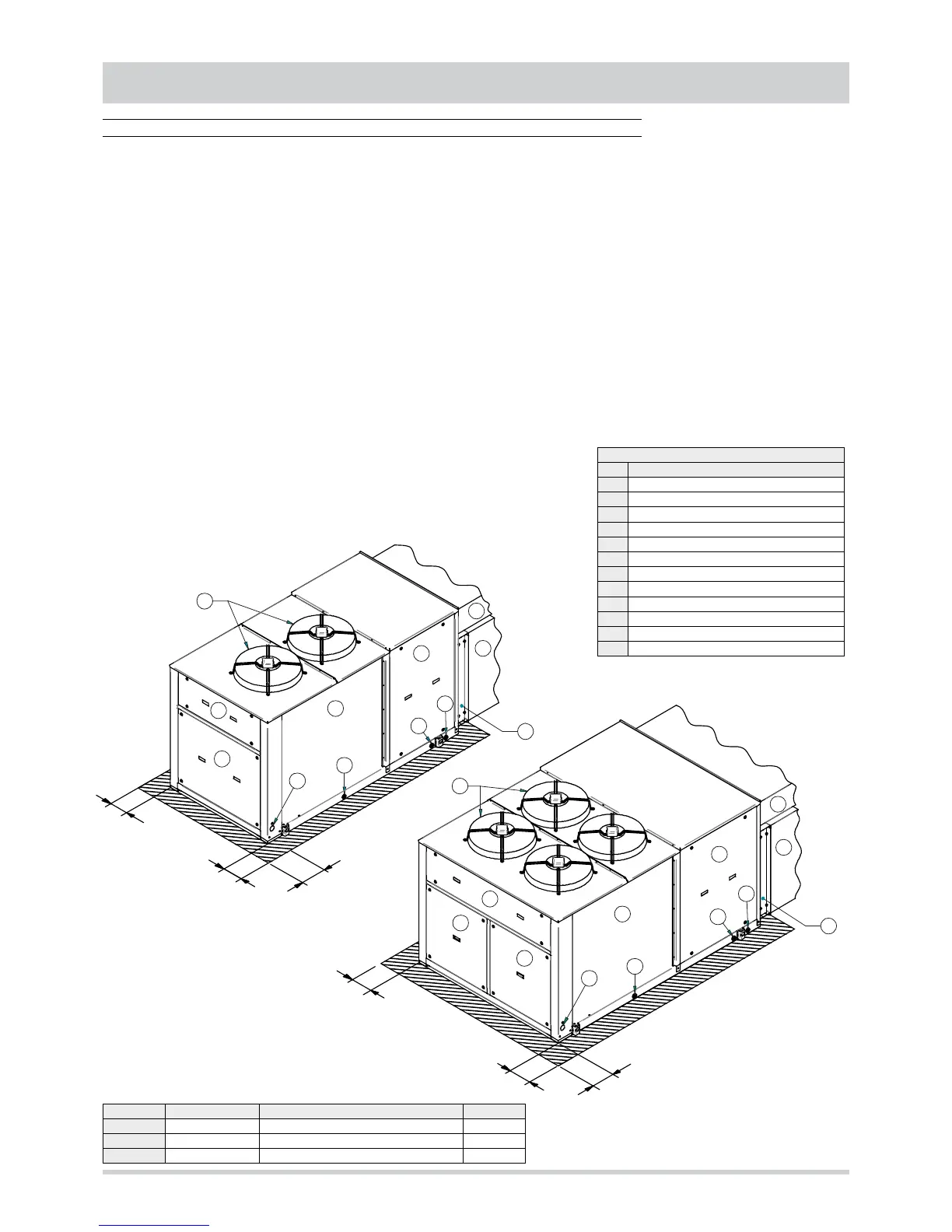 Respect the free area around the unit as shown in the figure in order to guarantee a good accessibility and facilitate maintenance