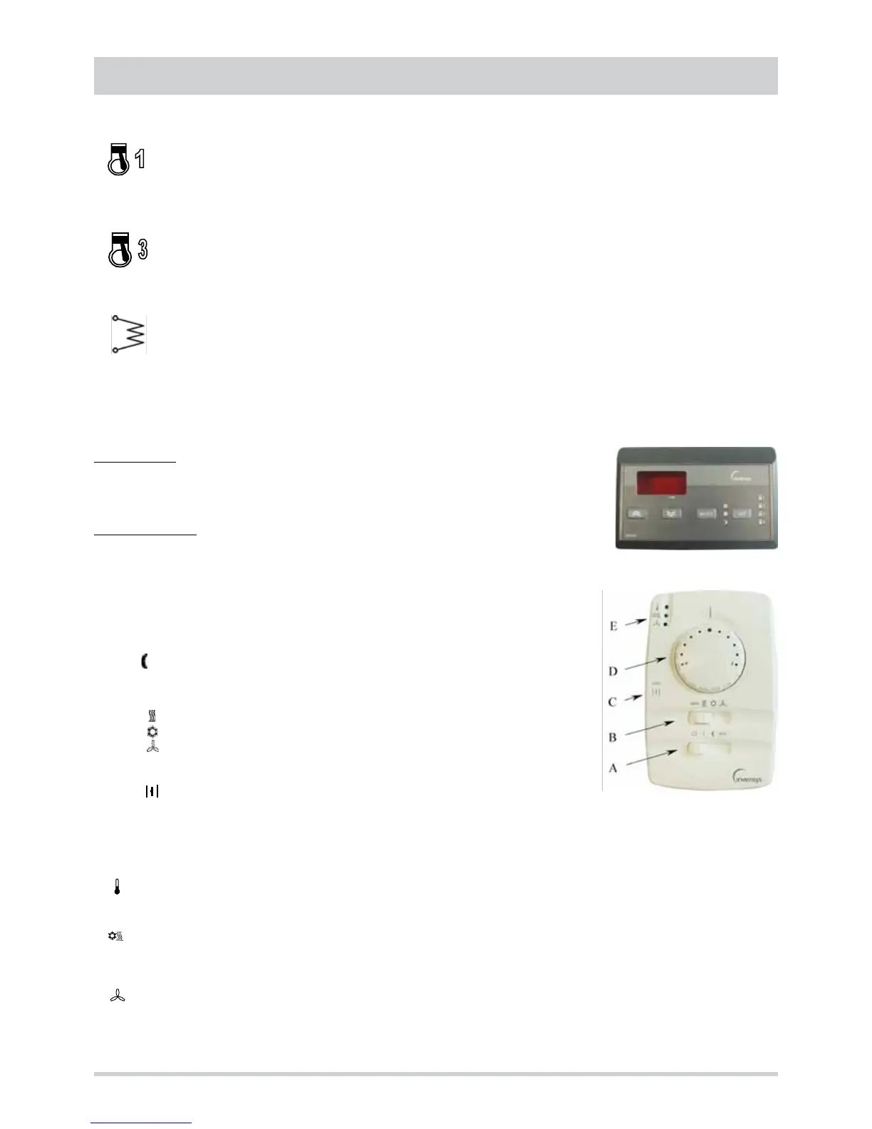 The knob D is used to set a deviation with respect to the set point of the operating mode selected. The deviation is algebraically