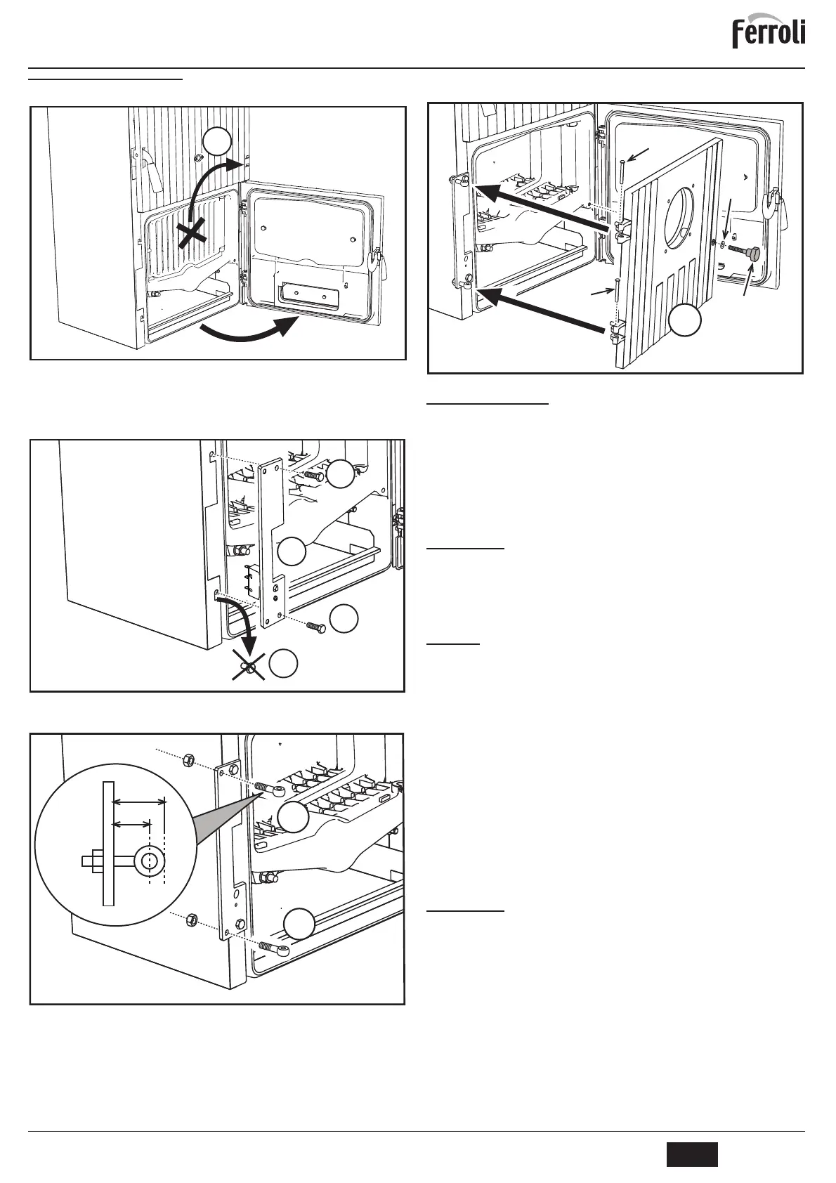 Hook the door “G”, inserting the pins “H”. Close the door, tightening the knob “P”, in-