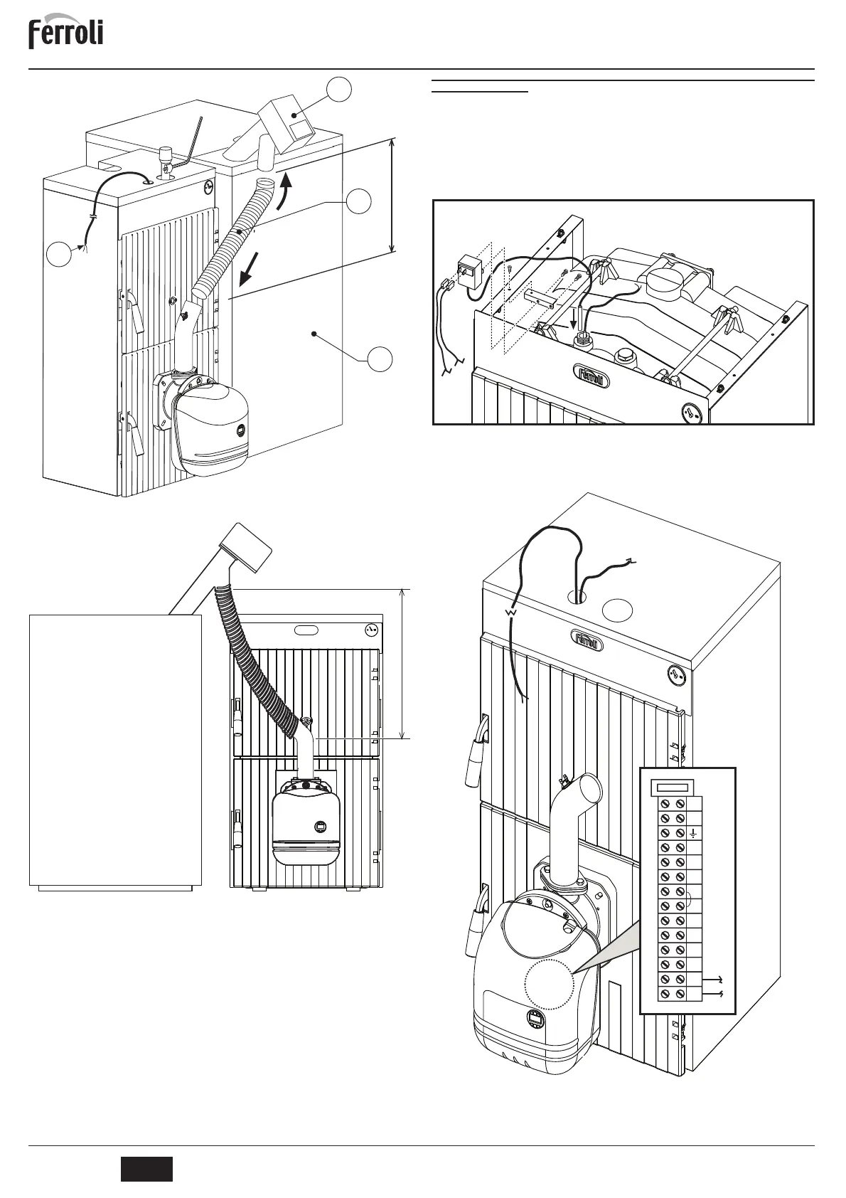 • Brancher le câble sur les bornes 13 et 14 de la boîte à bornes à l’intérieur du brûleur.