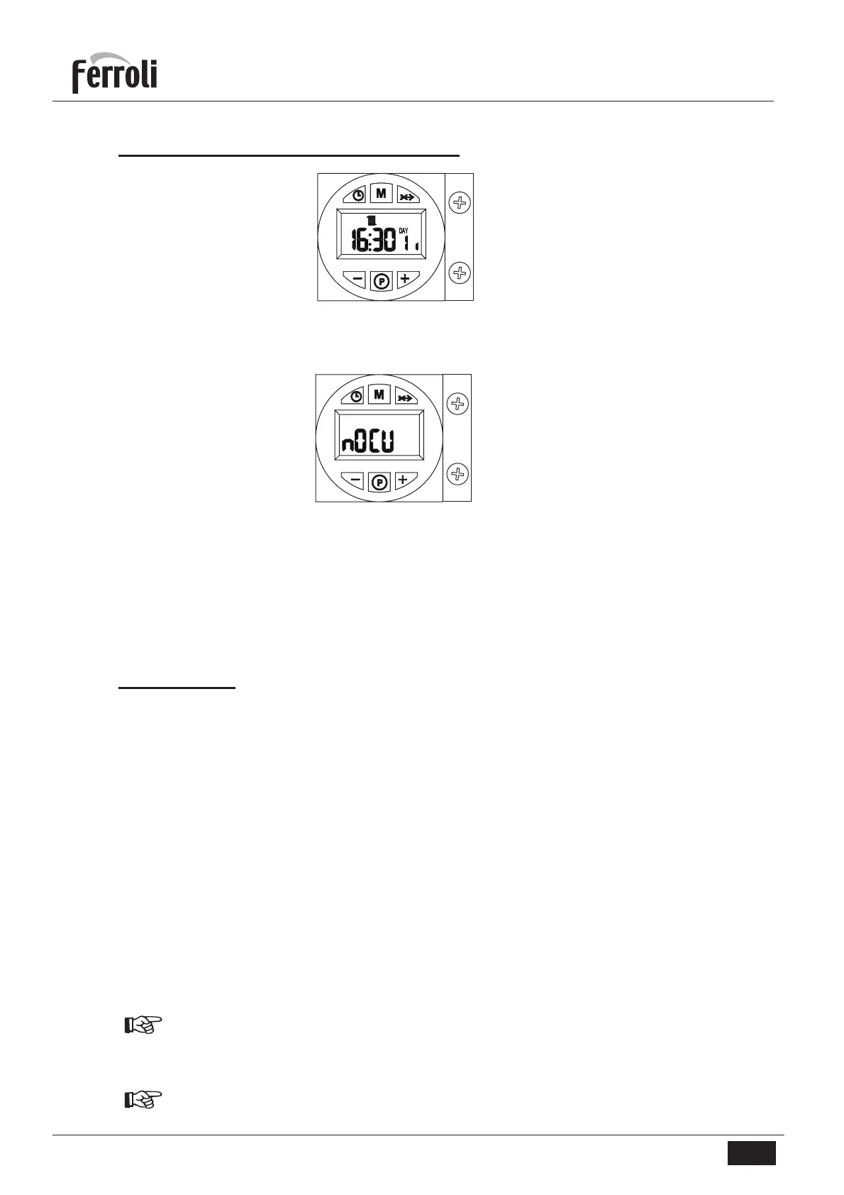 ώρας πιέζοντας το μπουτόν ρύθμισης ημέρας/ώρας (1 - εικ. 1). Αυτόματη λειτουργία, Χειροκίνητη On,