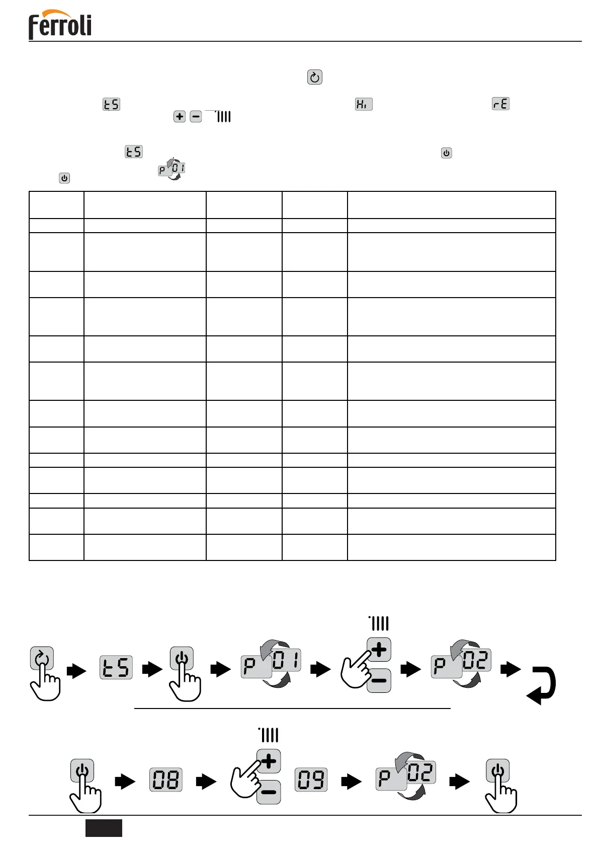 P02 Switch on heating temperature 5 ÷ 20 °C 8 °C
