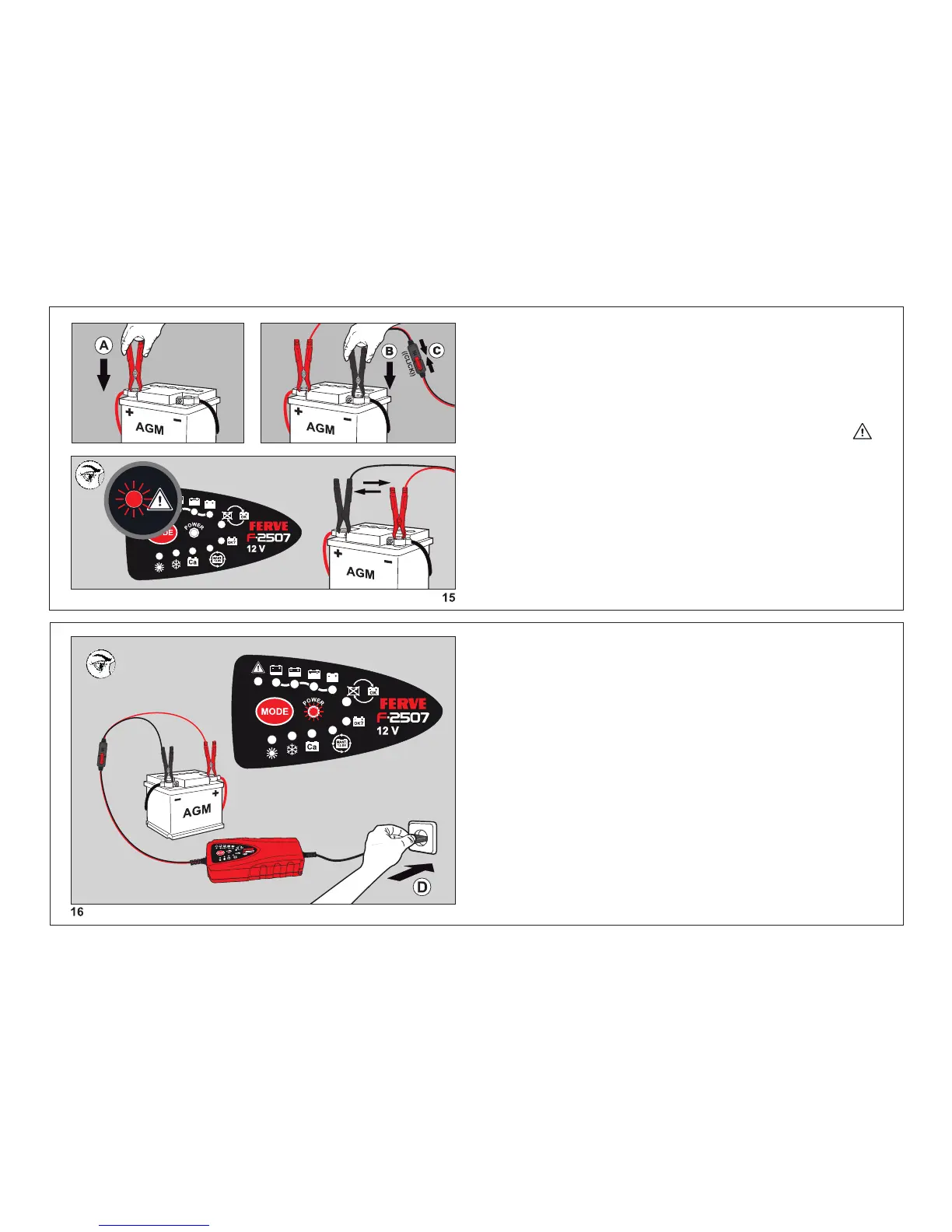 Finally, connect the clamps to the charger (C).