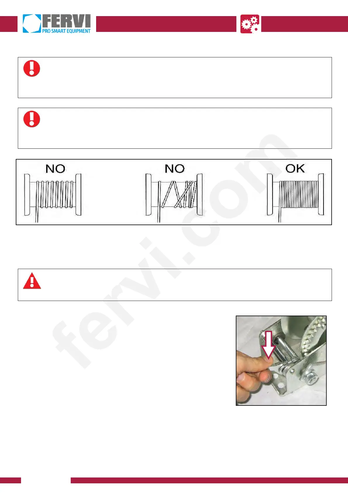 When pulling the load, inspect the cable layout, which must be properly wrapped on the drum