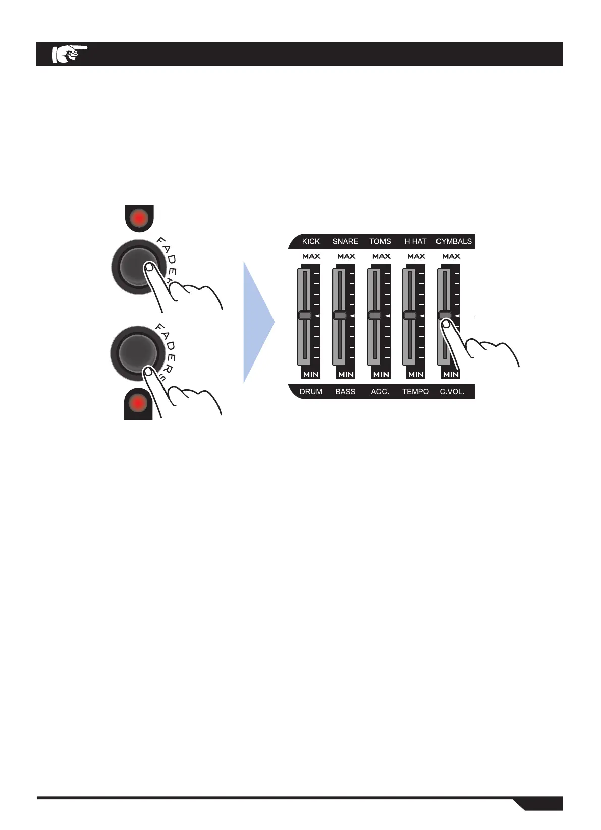drum, cymbals). (drums, bass drum, cymbal beat, and volume) Push the slide ad-