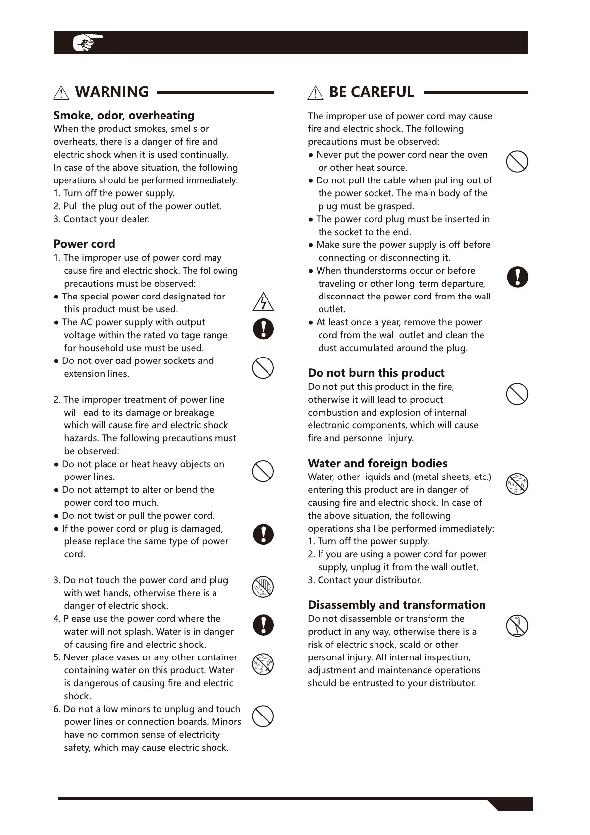 FESLEY FED150W - WARNING; Power cord; BE CAREFUL; Do not burn this product