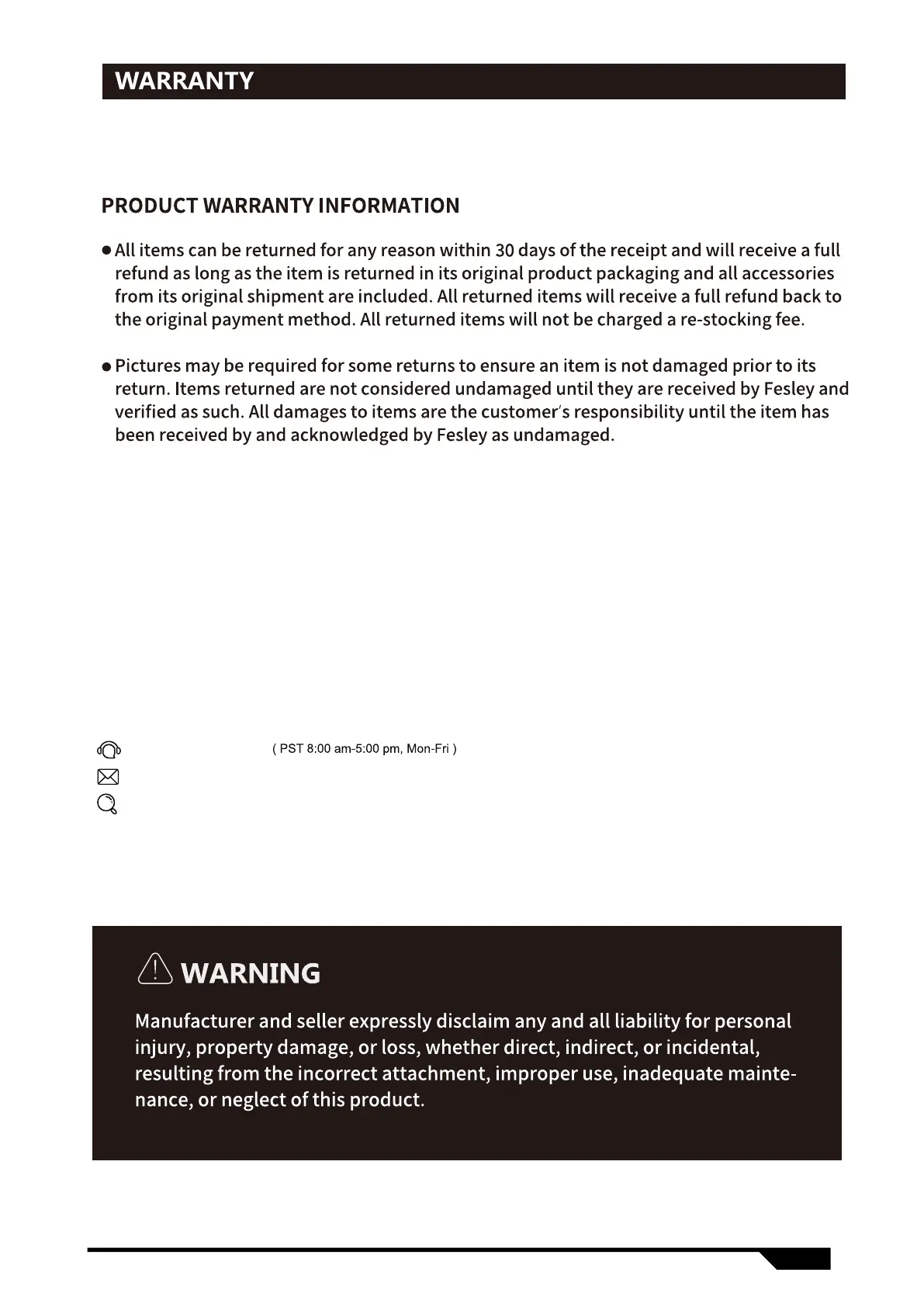 FESLEY FED150W - WARRANTY; PRODUCT WARRANTY INFORMATION