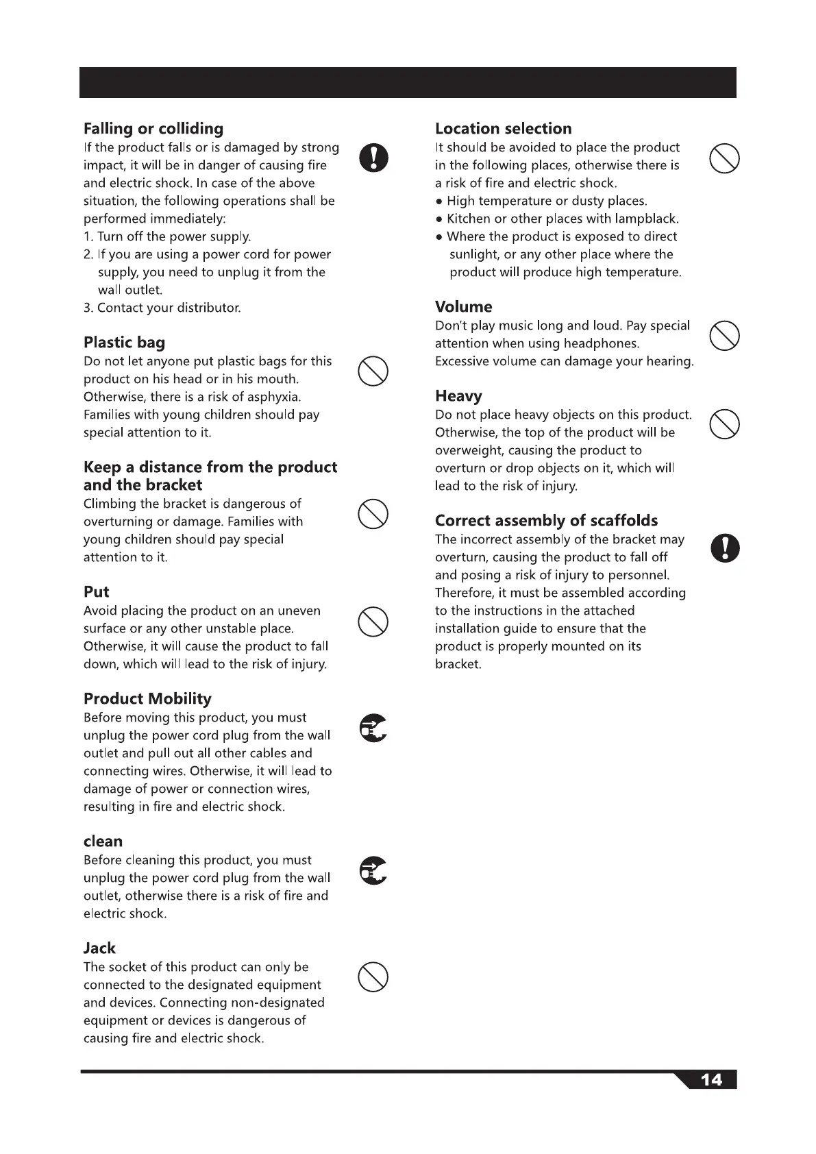 FESLEY FED200 - Falling or Colliding; Plastic Bag Safety; Product Mobility and Placement; Scaffold Assembly