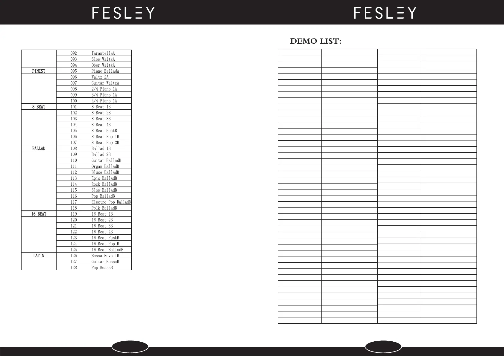 FESLEY FEP660 - Demo Song List