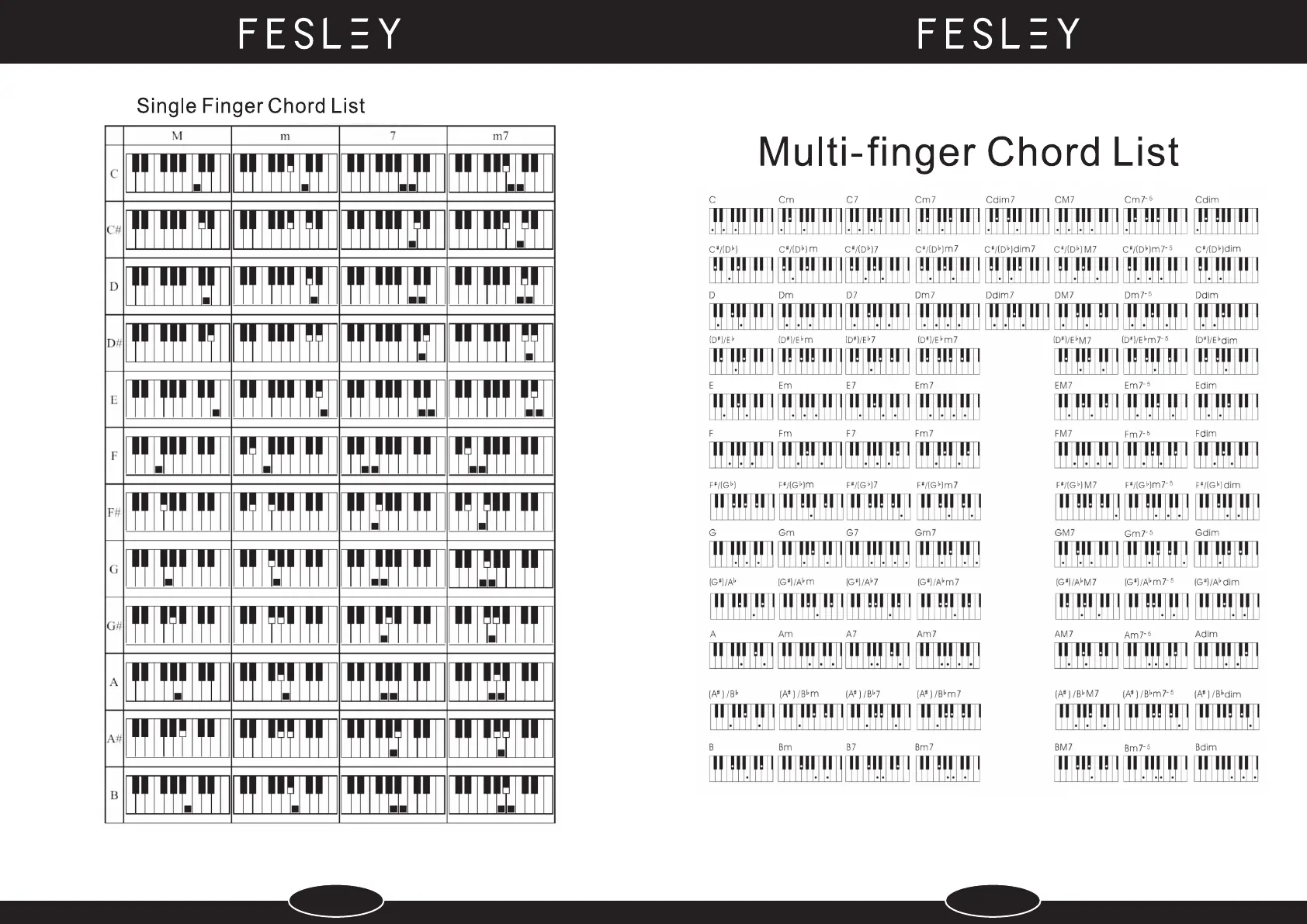 FESLEY FEP660 - Chord Lists; Single Finger Chord Diagrams; Multi-finger Chord Diagrams