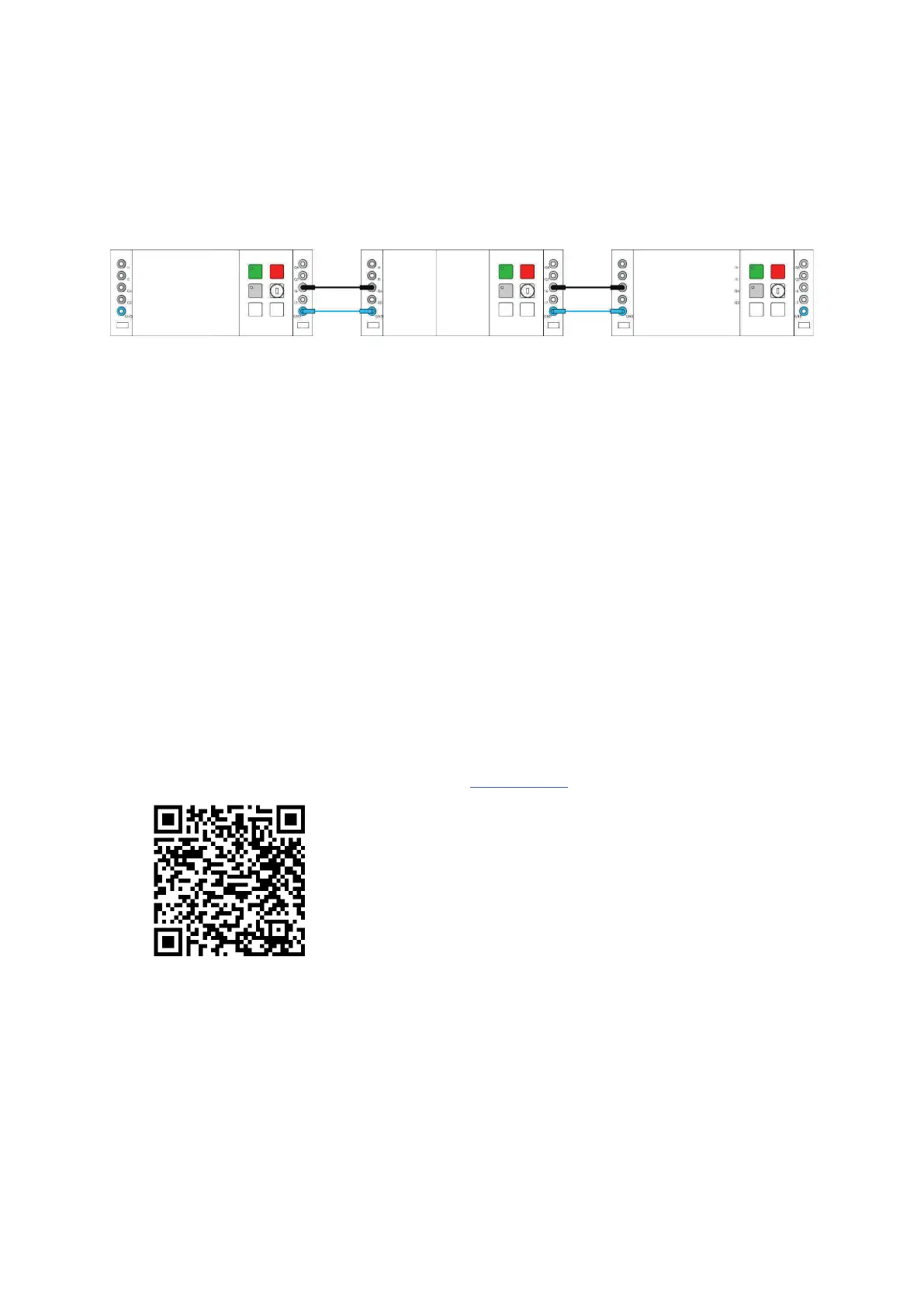 • Connect the sockets Q4 and GND of the downstream station to the sockets I6 and GND of the upstream