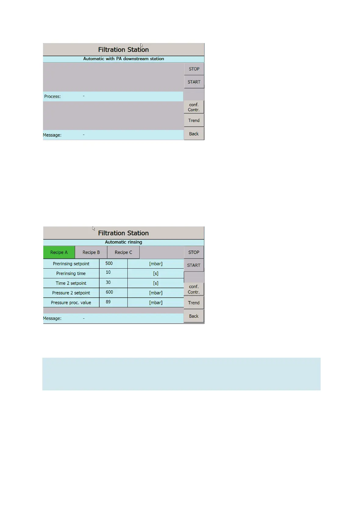 6. Press the “Start” button to start the recipe (see chapter 10.4 Sequence).