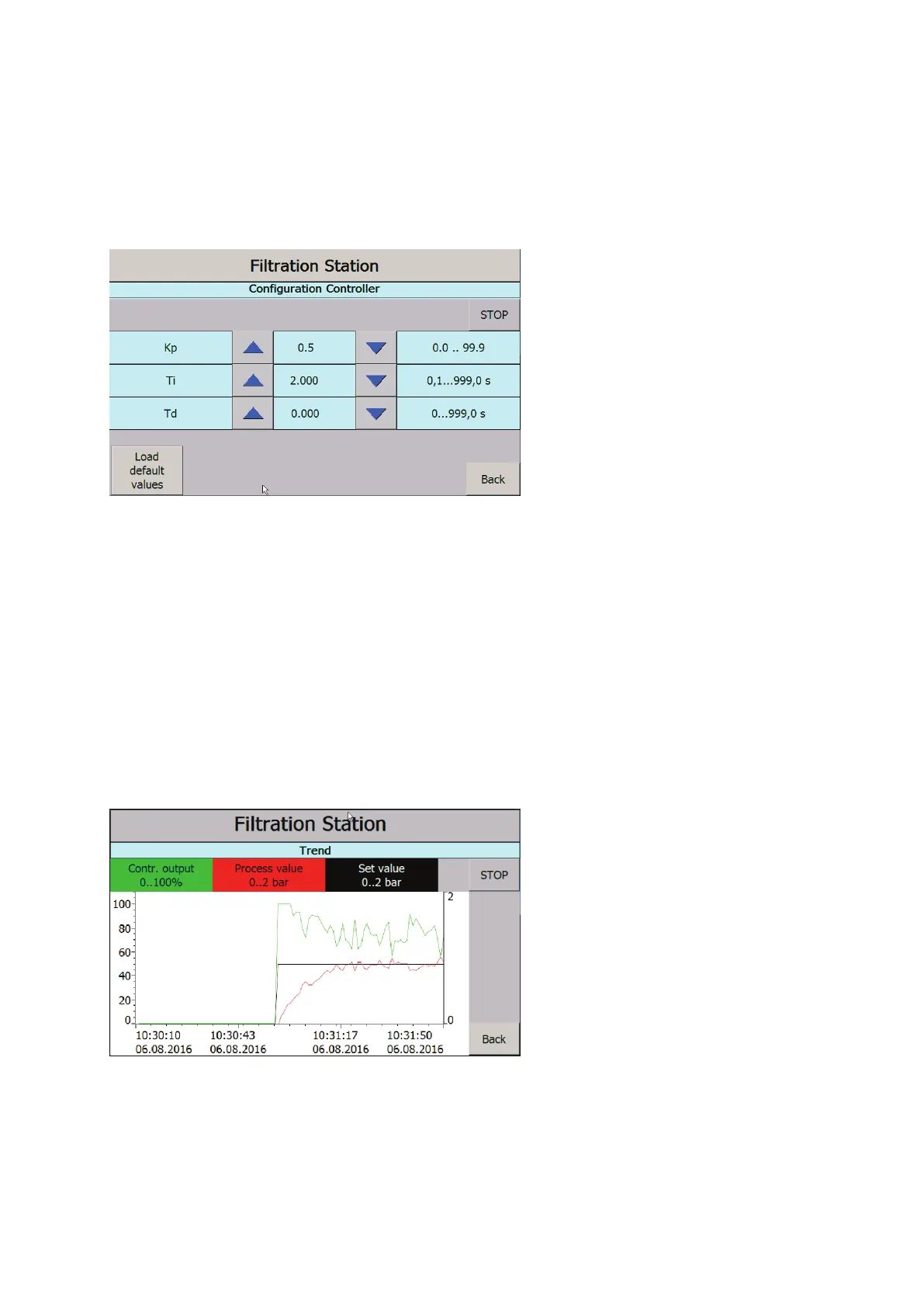 5. With the “Load default values” switch, you reset the control system to specified standard values.