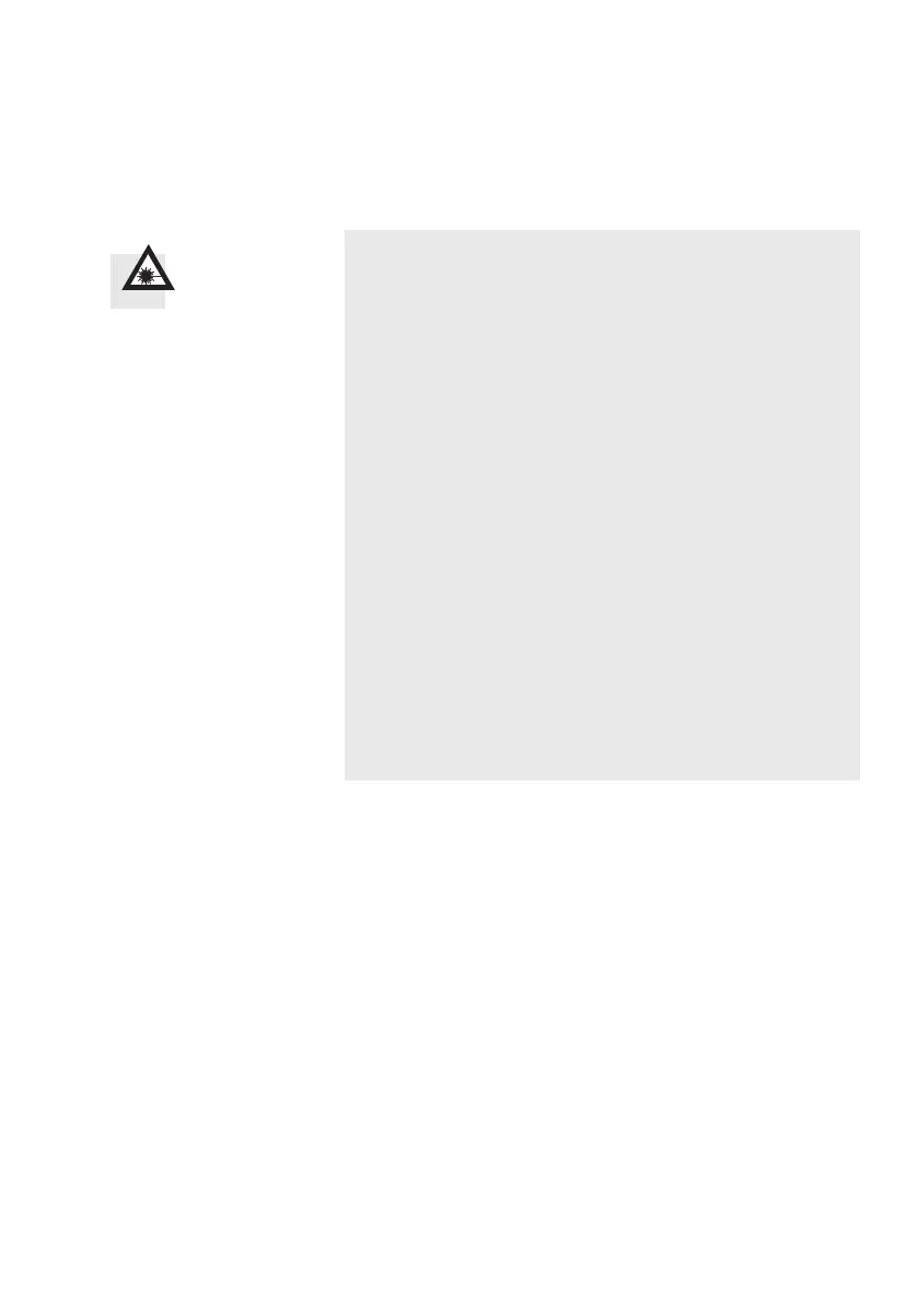 • Never stare into the laser beam and never direct the
