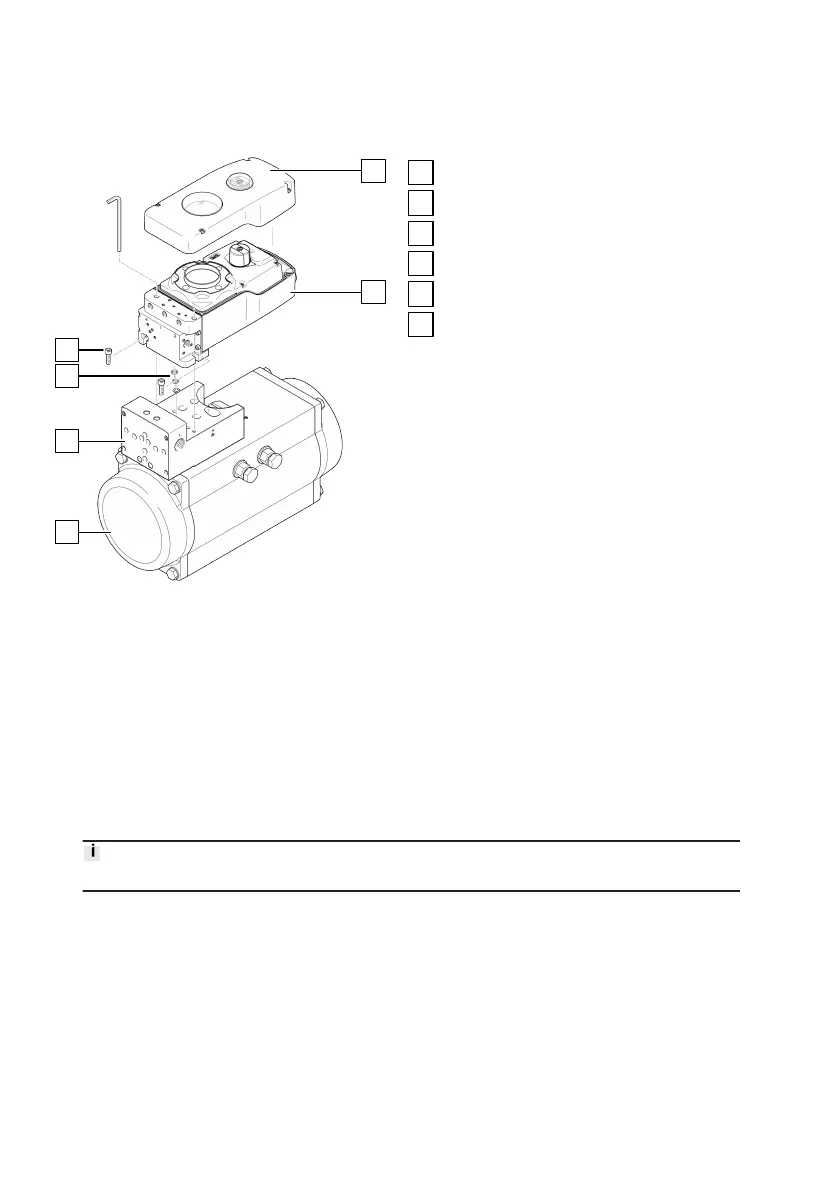 6. Place the positioner with the shaft adapter on the adapter plate and align it. The swivel angle