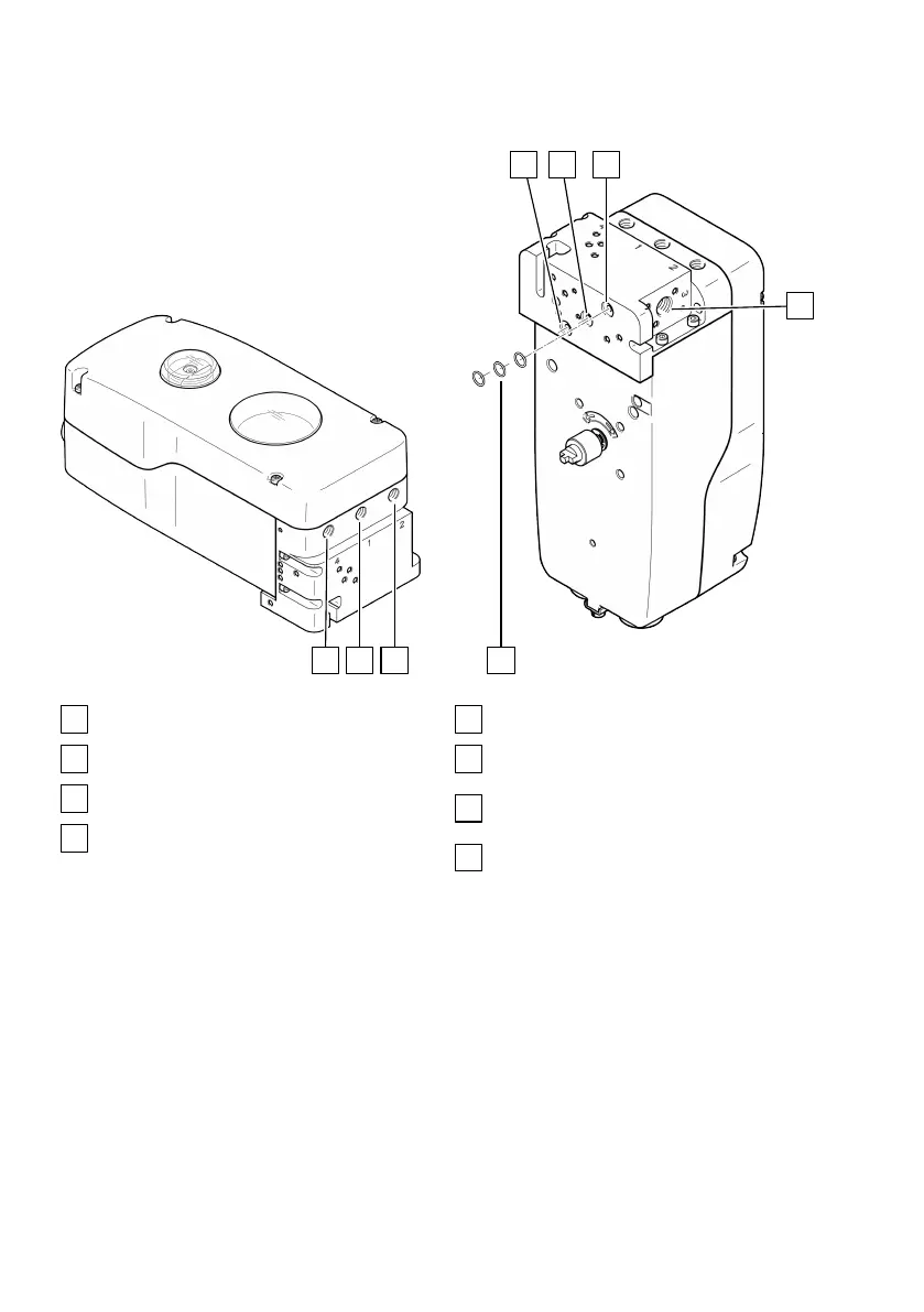 Screw the fittings, silencers and pressure gauges into the corresponding pneumatic ports.